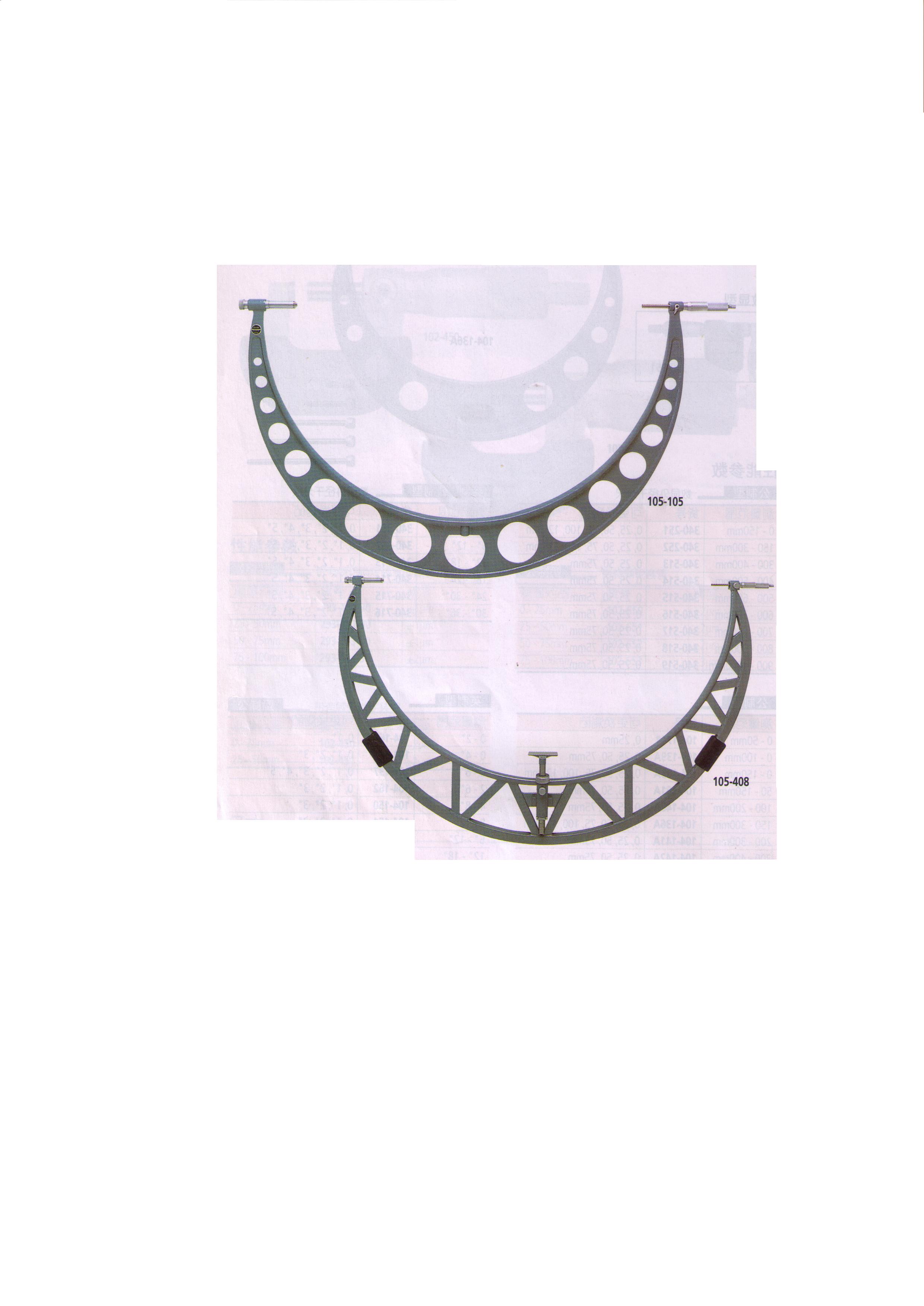 日本三丰品牌 MITUTOYO 105-408 外径千分尺 特点: 1 延长测砧套管可增加宽度测量范围. 2 方型和圆形管构成轻型、坚固的框架(用于1000mm以上的型号) 50mm心轴行程 3 棘轮锁定装置可保持恒定测力。 4 每个测量范围都带有调零基准杆。 工件止动器(帮于1000mm以上的型号) 性能参数 公制型 测量范围 货号
