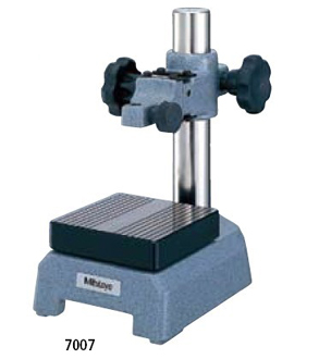 千分表台架 7系列 日本三丰品牌 MITUTOYO 7007 千分表台架 千分表台架专用于对指针式千分表或Digimatic千分表的高度测量结果进行高度比较。 特点: 1、台架的垂直行程—千分表台架:100mm,移动台架:335mm。 2、可实现1mm微调,适于进行千分表调零。 3、带有一个可更换测砧,半球型测砧(101463)选件。 选件: 101462:硬化钢齿型测砧(平面度:1&mic