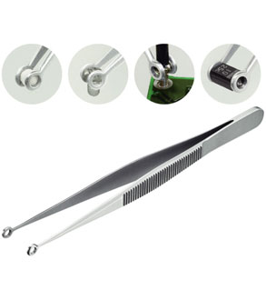 HOZAN P-878 // 镊子 此种尖端为圆孔形的镊子,便于夹住形状不规则的物品。 与一般的平形镊子相比,此种镊子能够将圆状及带棱角物品牢牢夹住而不会滑落。 尖端尺寸 外径4mm¢、内径2.2mm¢ 材料 不锈钢 尖端开幅 9mm 全长 131mm 重量 18g