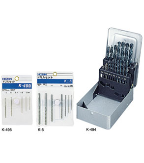 HOZAN K-5/494/495 // 钻头组 K-495是能和钻头夹组合起来使用的小口径套件。适用于基板的打孔加工。 品号 套件内容mm¿ 装入数 重量g K-5 0.8/1/1.5/2/2.5/3/3.2 7件装 18 K-494 1/1.5/2/2.5/3/3.5/4/4.5/5/5.56/6.5/7/7.5/8/8.5/9/9.5/1